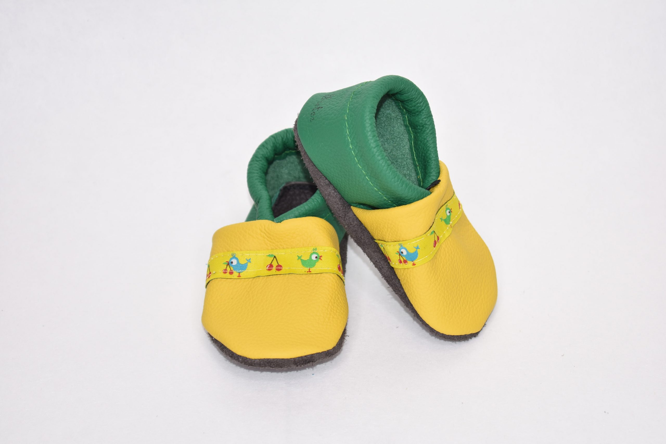 Gr. 18/19 Gelb/Grün mit Vögelchen Kirsch Band