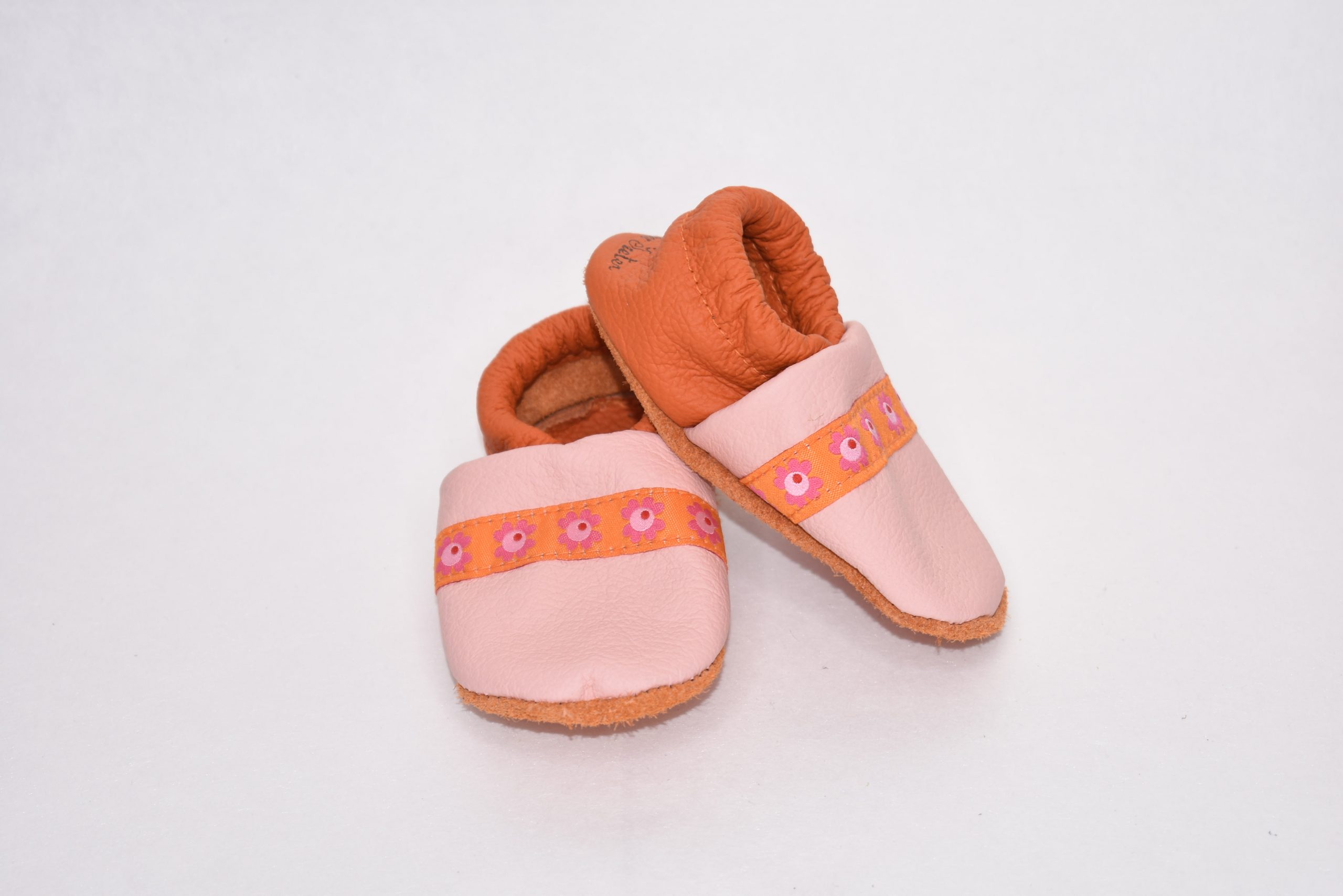 Gr. 18/19 Rosa/Orange mit Blumen Band UNIKAT