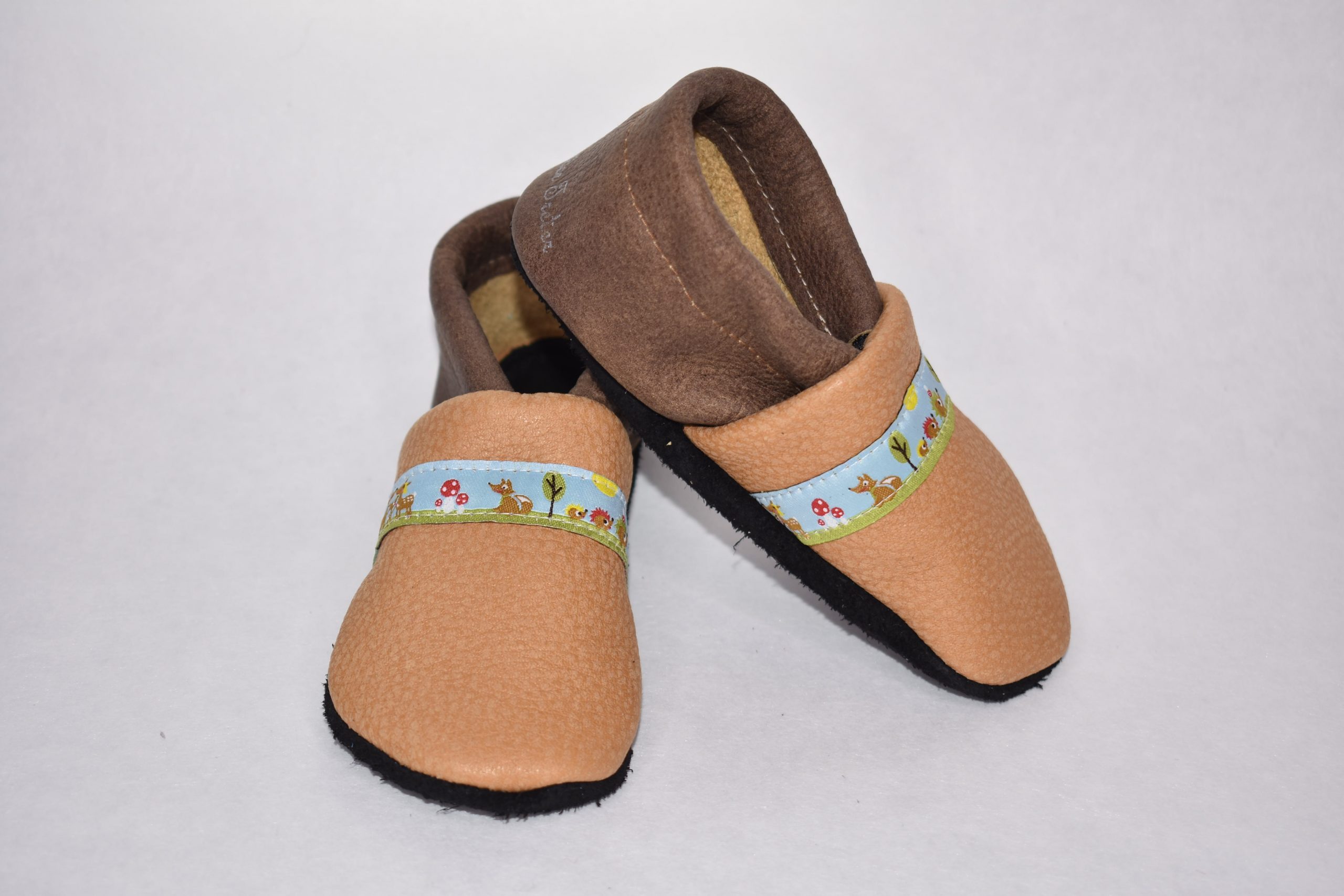 Gr. 23/24 Beige Rustikal/Braun Rustikal mit Rehe Igel Wald Band UNIKAT