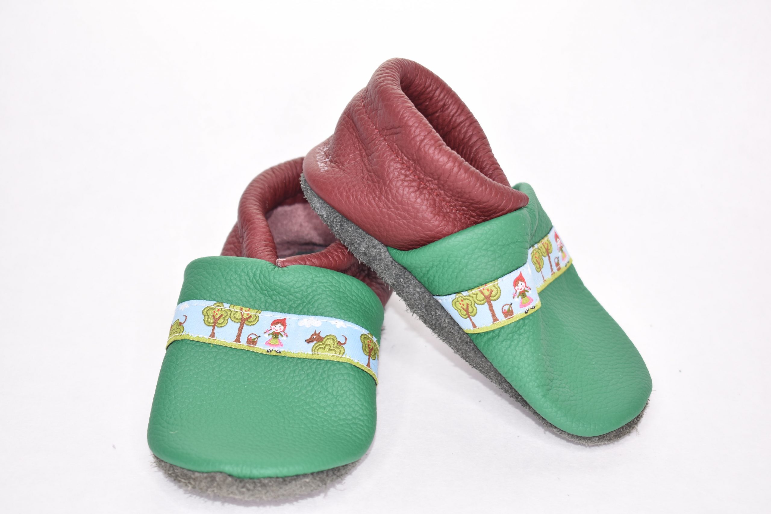 Gr. 23/24 Grün/Dunkelrot mit Rotkäppchen Band