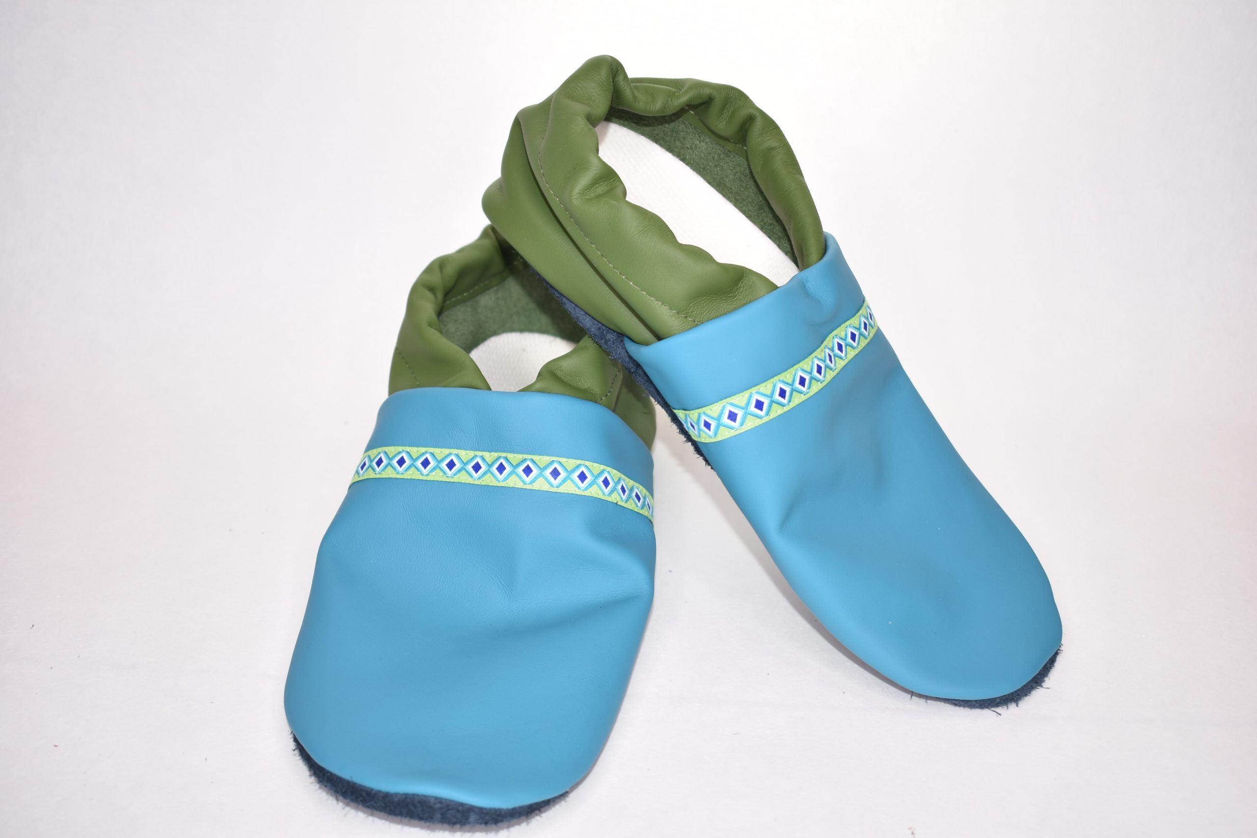 Gr. 40/41 Türkis/Dunkelgrün mit hellgrünem Rauten Band