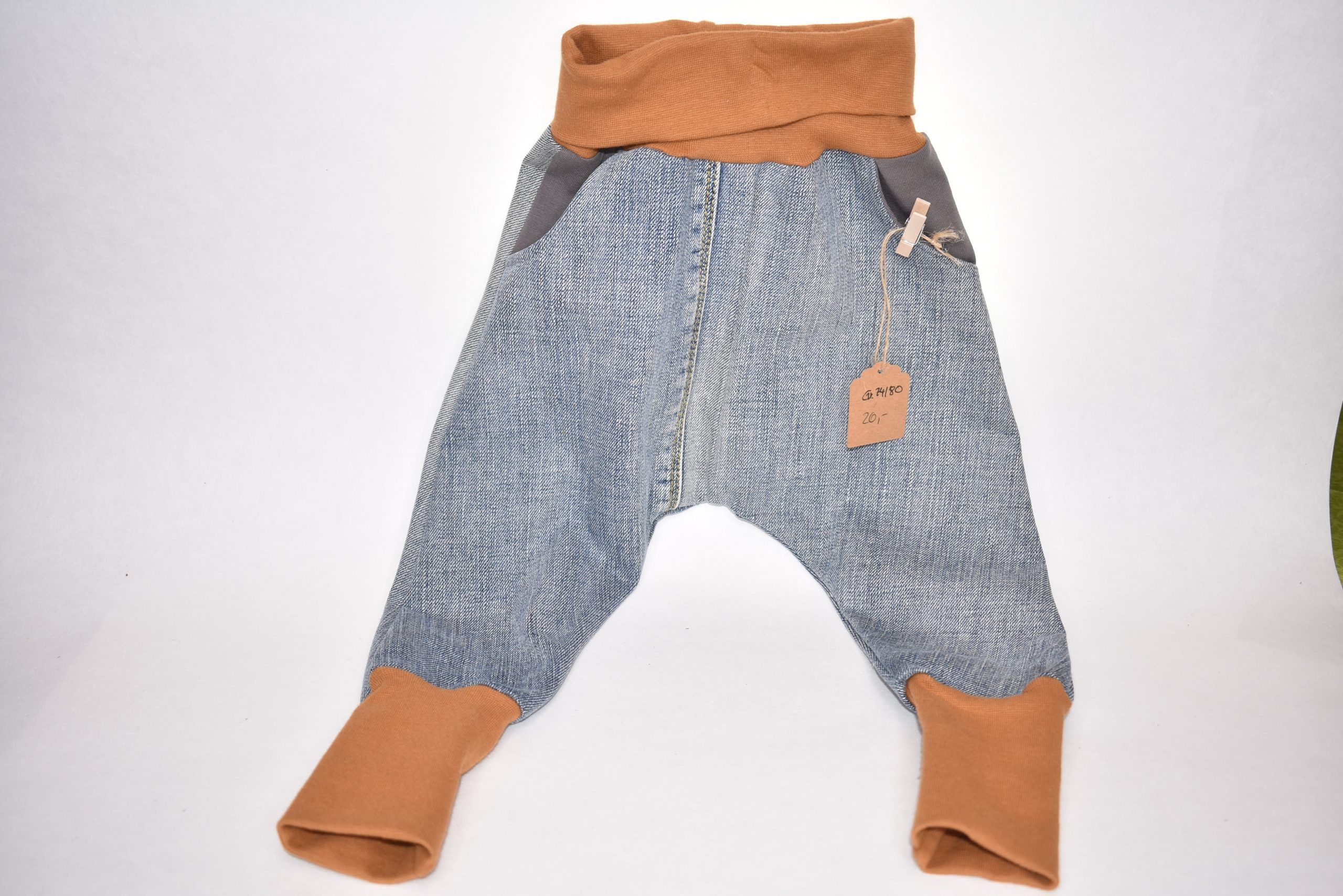 Gr. 74/80 Jeans Pumphose mit grauen Tasche und beigen Bündchen